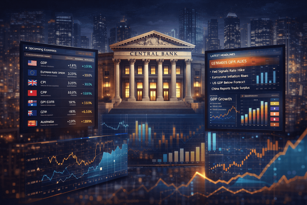 It includes economic indicators, interest rates, company earnings, and global events.